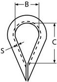 Коуш для троса из нержавеющей стали А4 предназначен для установки на трос при изготовлении петли и предохранения тросов и строп от перетирания, делает петлю более плавной.