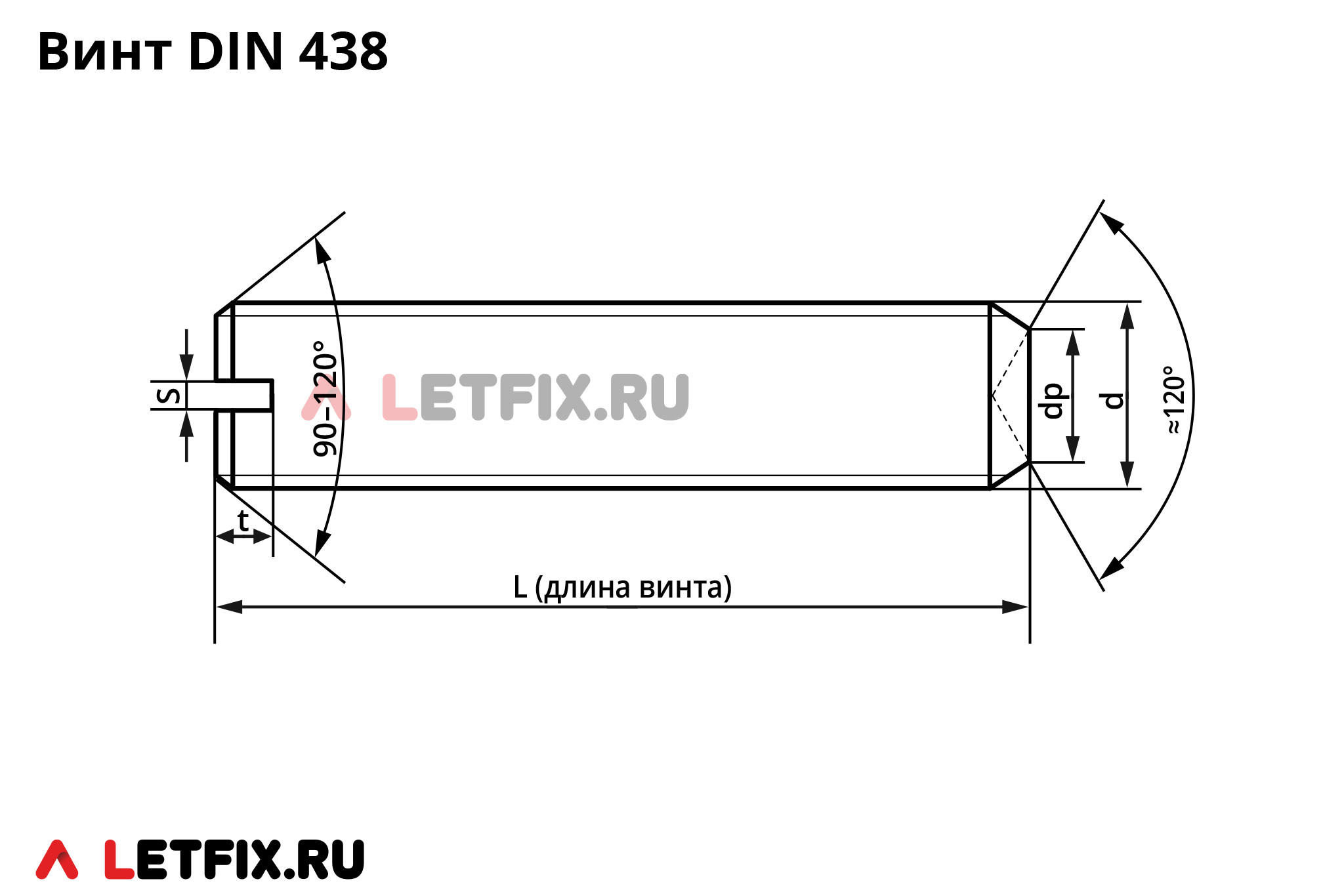 DIN 438 — установочный винт с прямым шлицем и засверленным концом. Используется при проведении сборочных работ.