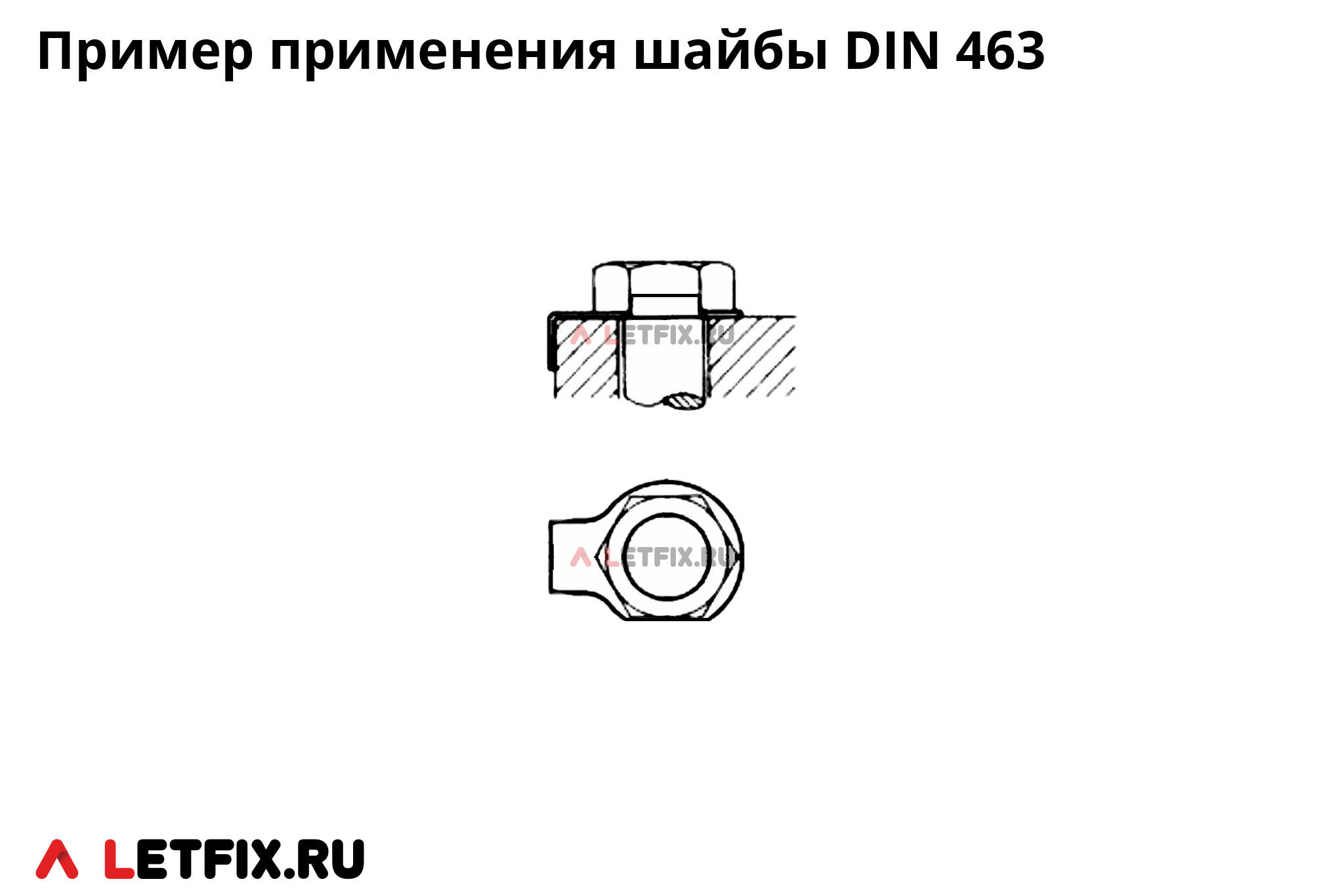 DIN 463 — шайба стопорная с двумя лапками для стопорения болтов с шестигранной головкой и шестигранных гаек.