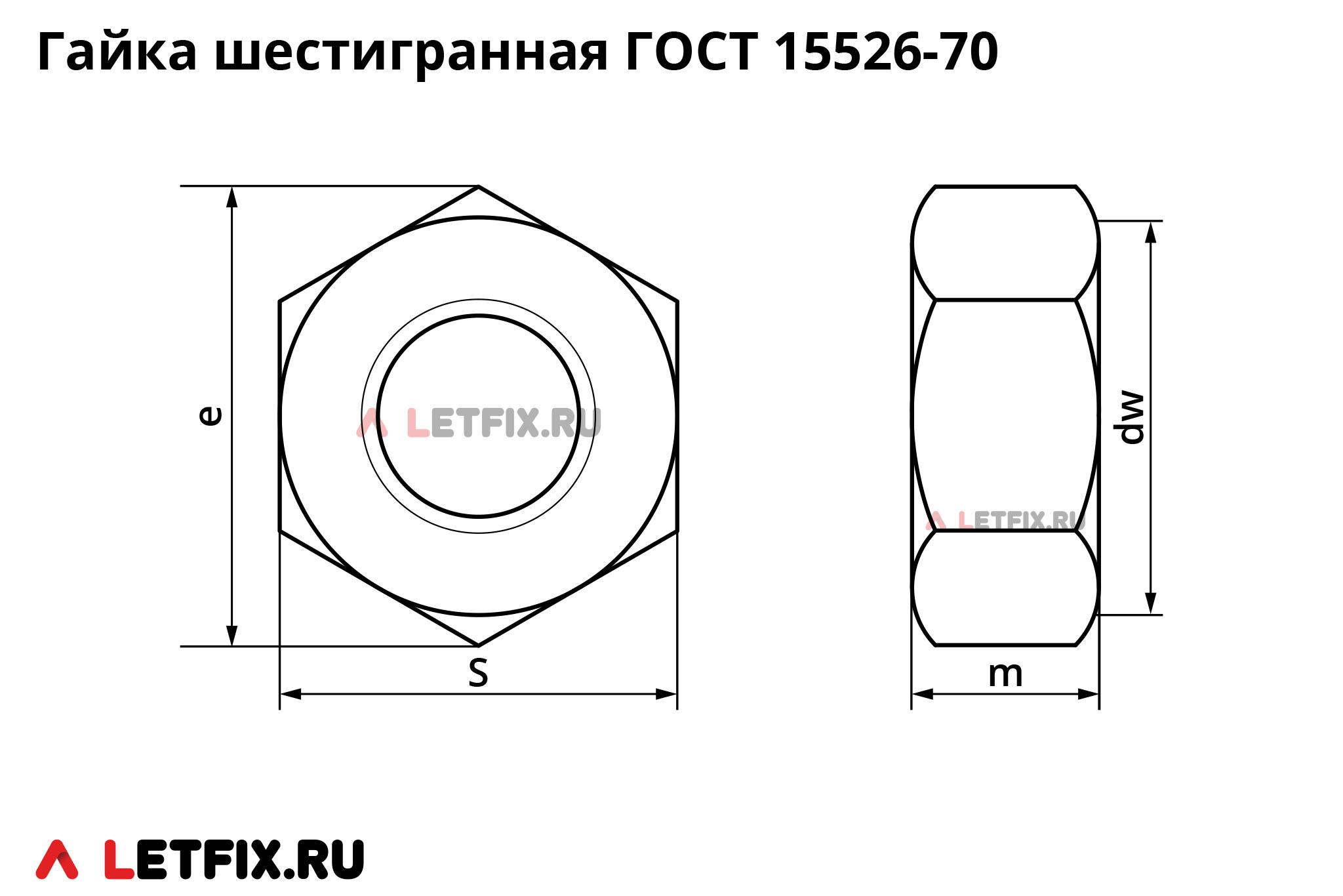 ГОСТ 15526-70 — гайки шестигранные класса точности С для сборочных работ. Применяются в различных производственных и строительных отраслях.