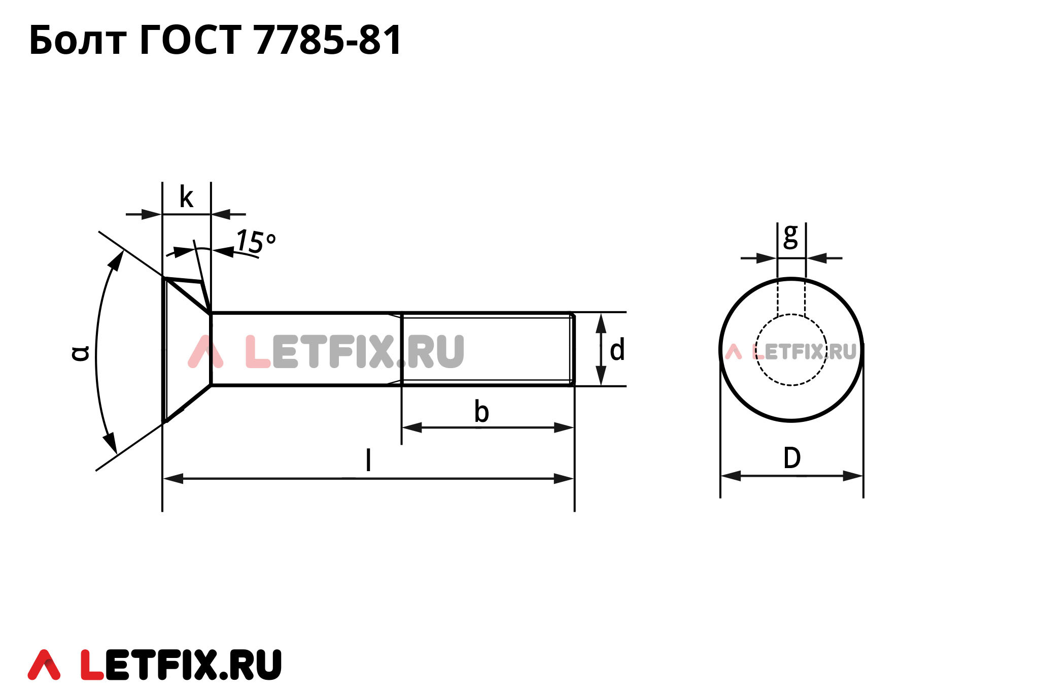 ГОСТ 7785-81 — болт потайной головкой и усом