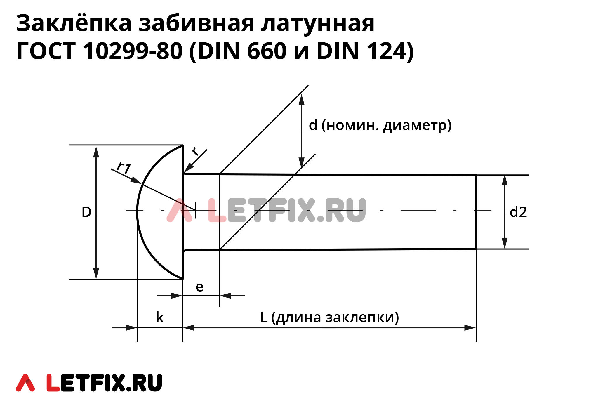 Заклепки забивные латунь DIN 660 (ГОСТ 10299-80) с полукруглой головкой под молоток — крепежные изделия, которые используются для неразъемного соединения двух и более элементов между собой.