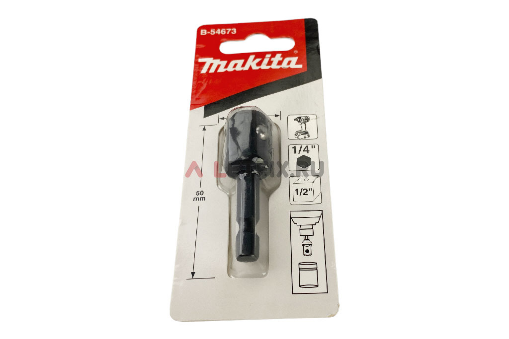 Переходник для шуруповерта 1/4"—1/2" Макита В-54673 имеет длину 50 мм.