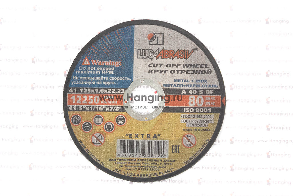 Круг отрезной 125*1.6*22.23 Луга (Лужский абразивный завод) для болгарки имеет посадочный диаметр 22.23 мм и предназначен для УШМ, шлифовальных и отрезных машин со шпинделем 22.23 мм.